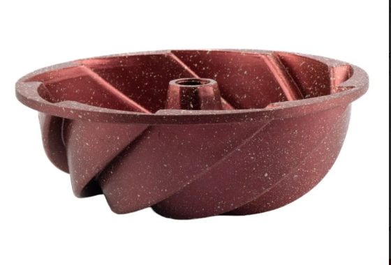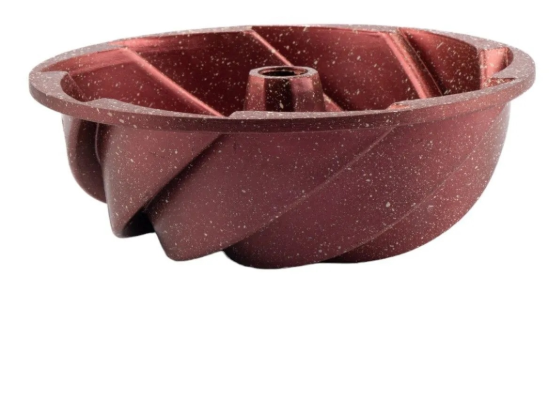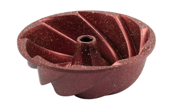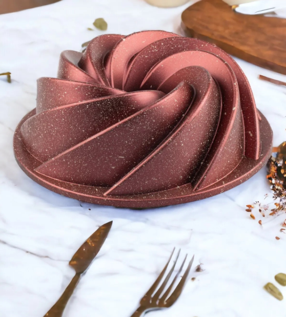 A durable cast aluminum cake mold with a stylish granite-effect non-stick coating for even baking and easy release. Perfect for bundt and pound cakes.