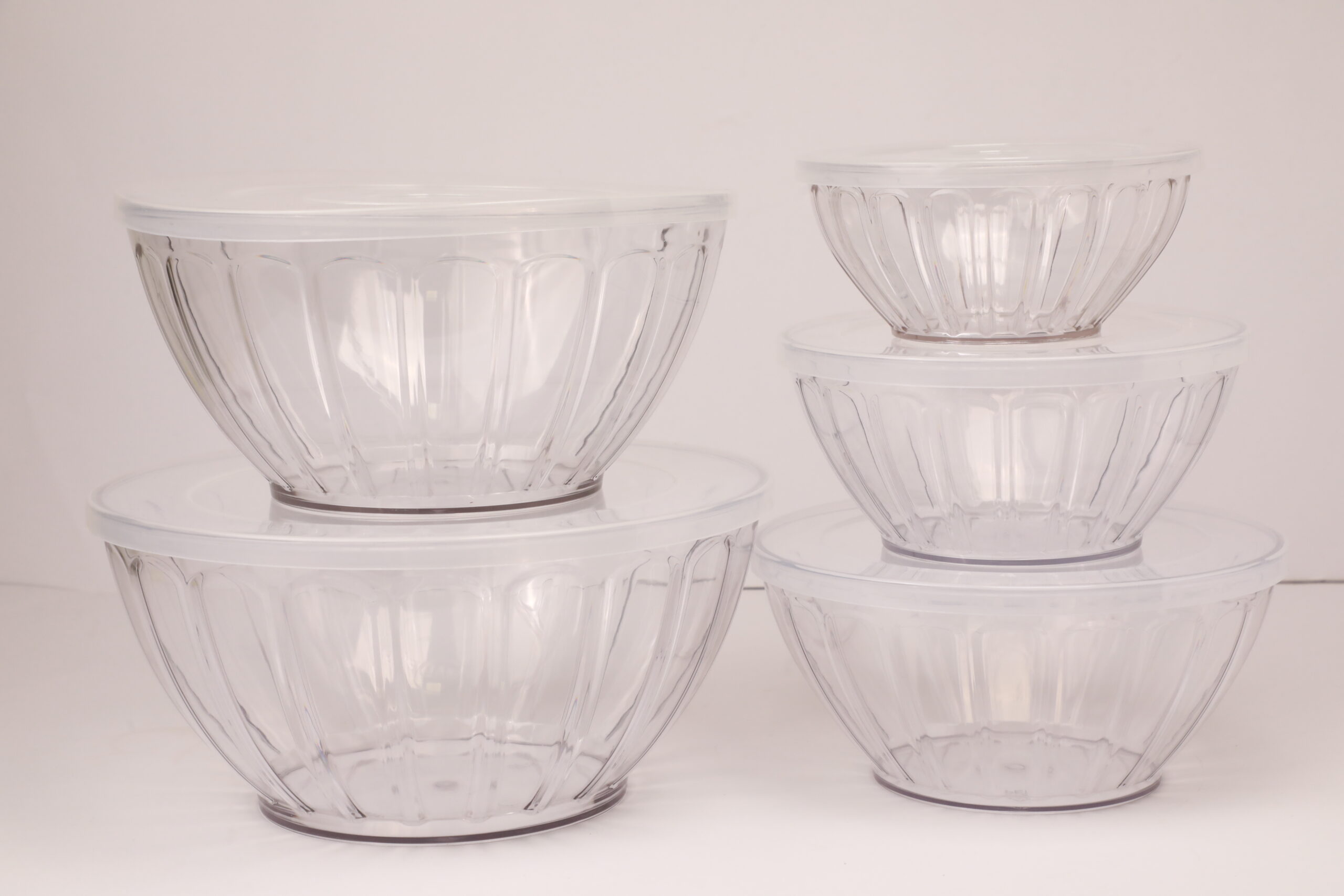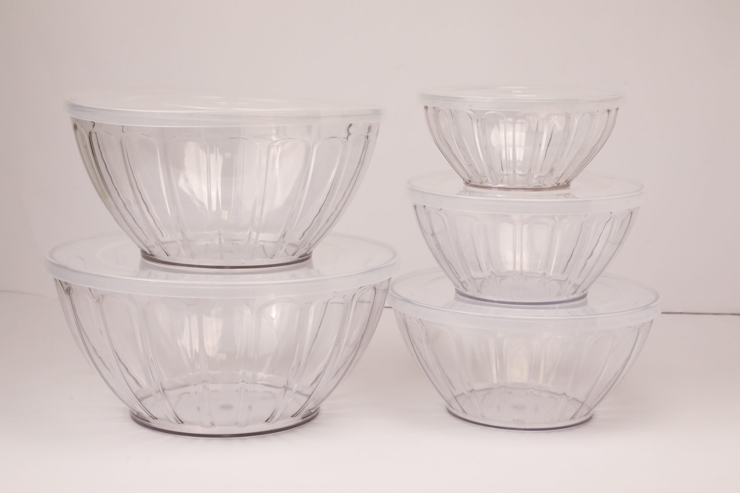 5-piece salad bowl set ideal for sharing dishes at the table. Functional and stylish for salads, pasta, or side servings.