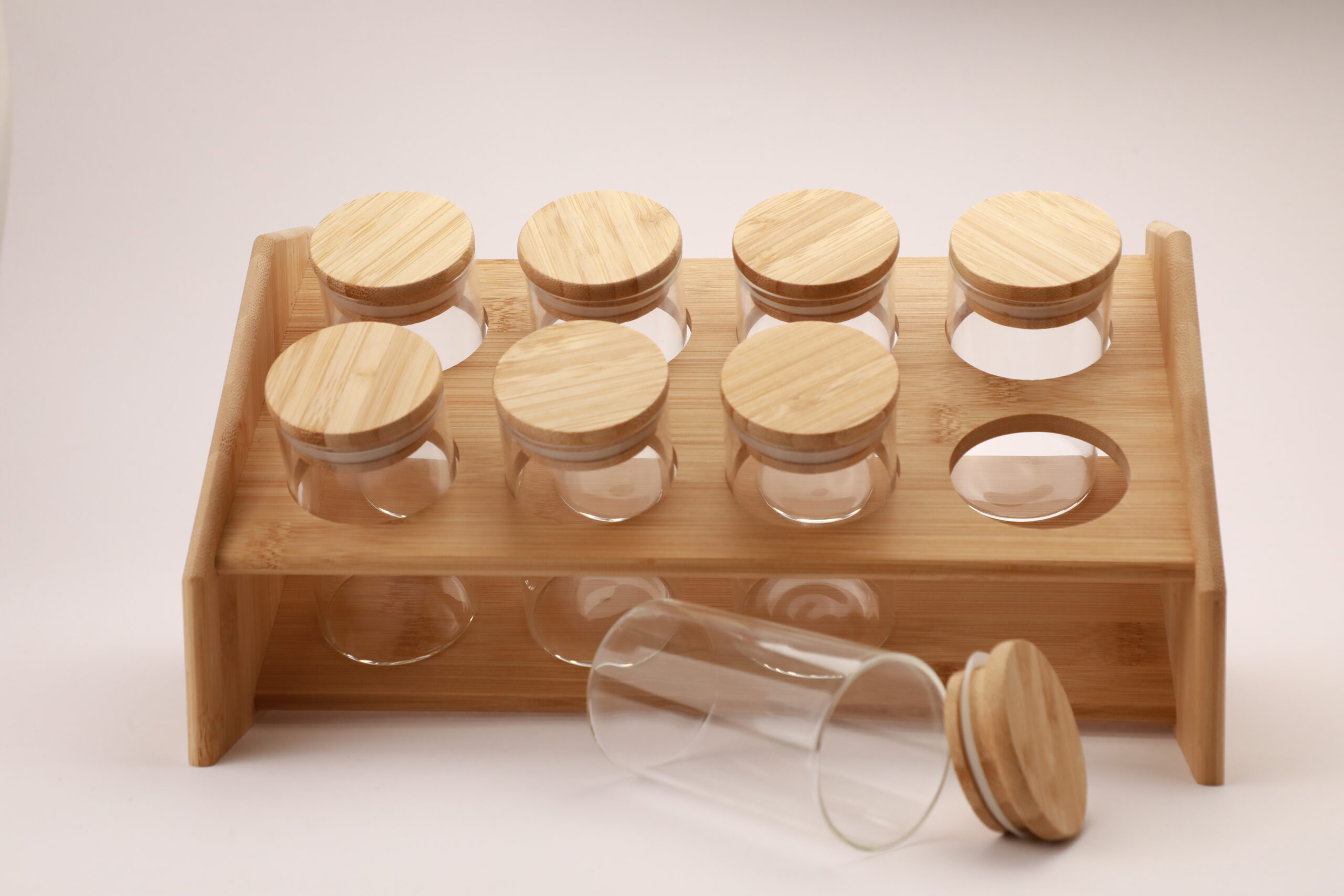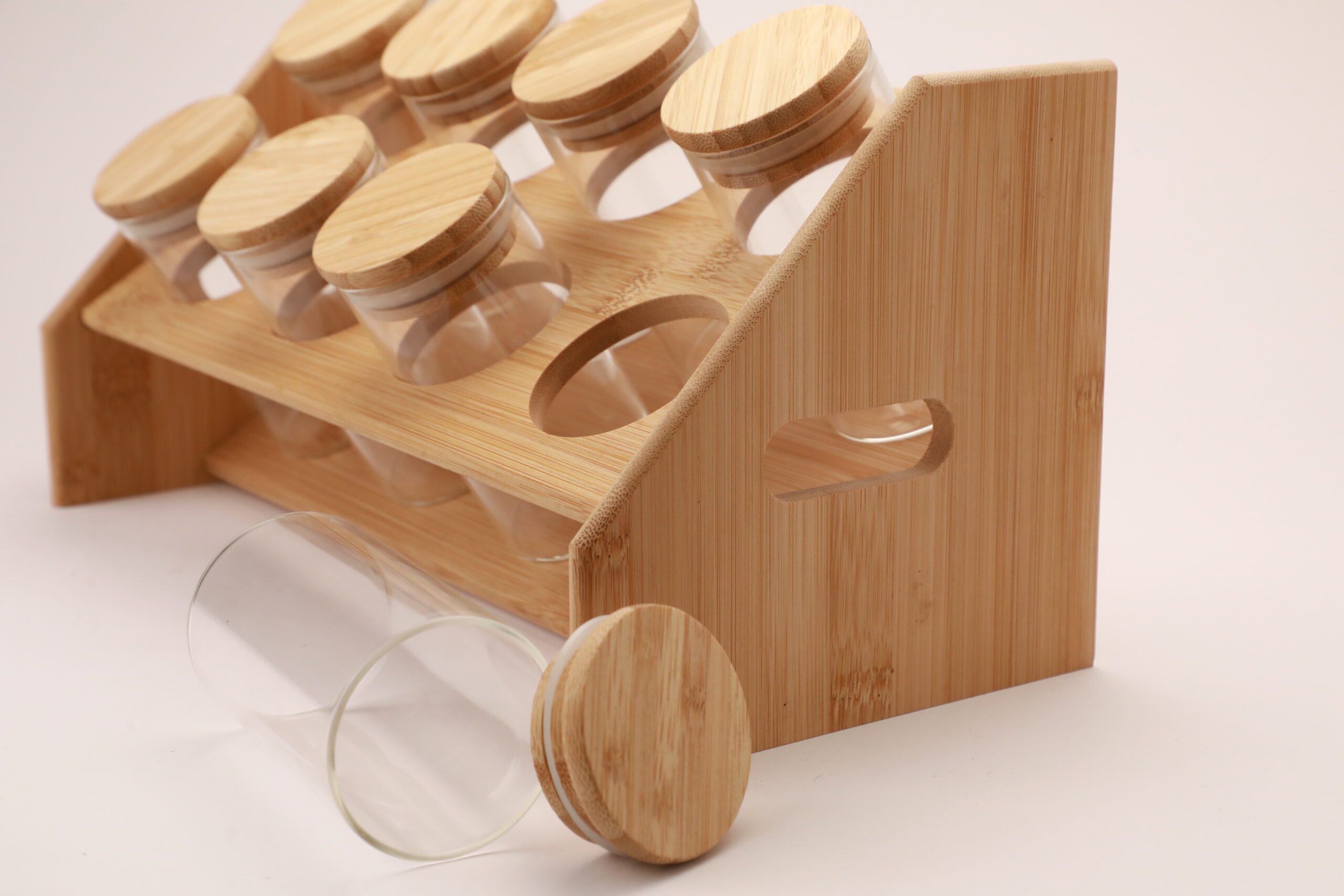 Keep your spices neatly organized and within reach. This 8-piece set comes with matching containers and a sleek stand — perfect for a tidy and stylish kitchen setup.