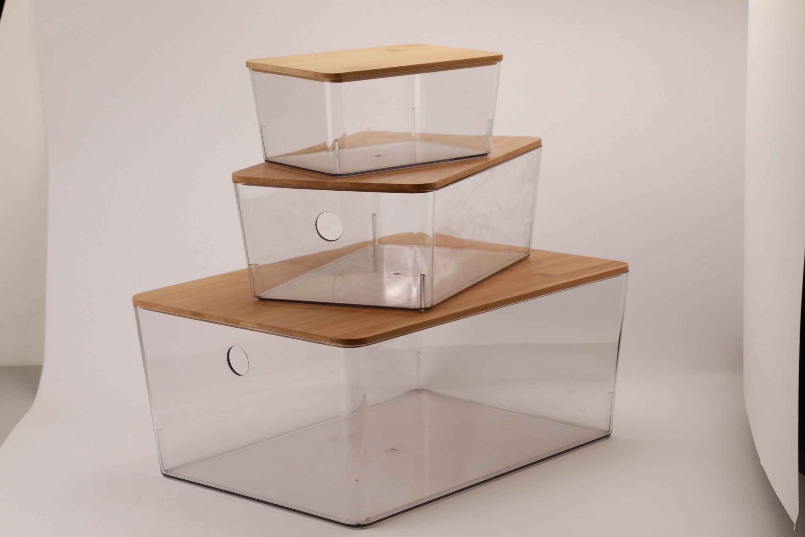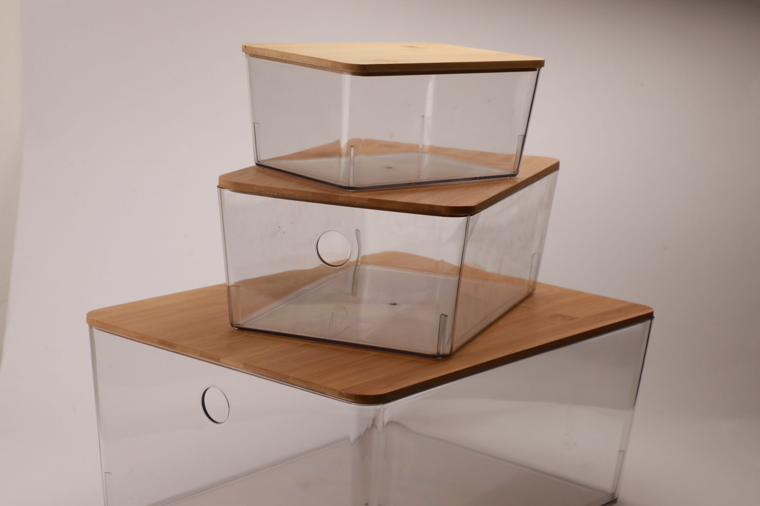 Blend functionality with natural style. This storage box features a sleek bamboo lid and a durable body—perfect for organizing essentials while adding a warm, modern touch to any space.